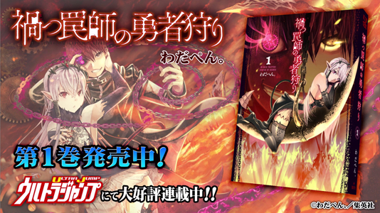 ウルトラジャンプ連載中のわだぺん。先生の最新作『禍つ罠師の勇者狩り』の第一巻発売に伴うCMを制作を弊社で担当いたしました。 |