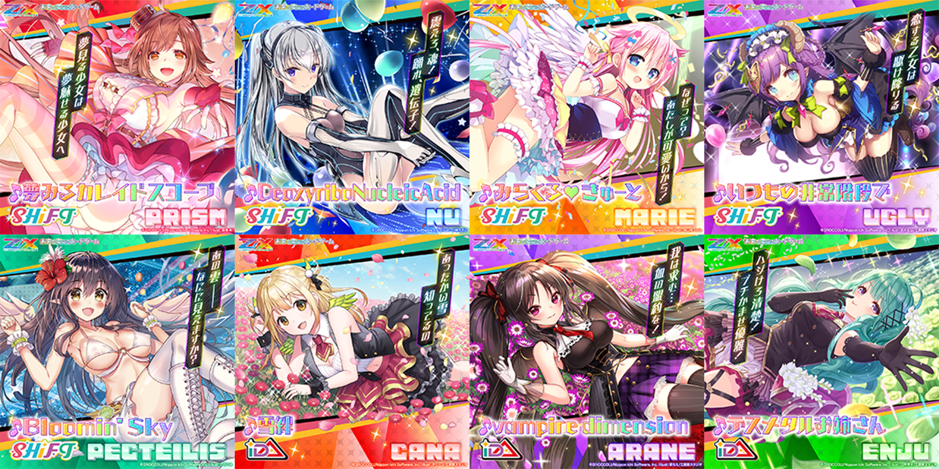 人気トレーディングカードゲーム「Z/X(ゼクス)」から誕生した声優アイドルグループ「SHiFT」「iDA」のメンバー8名のソロ楽曲を担当しました。